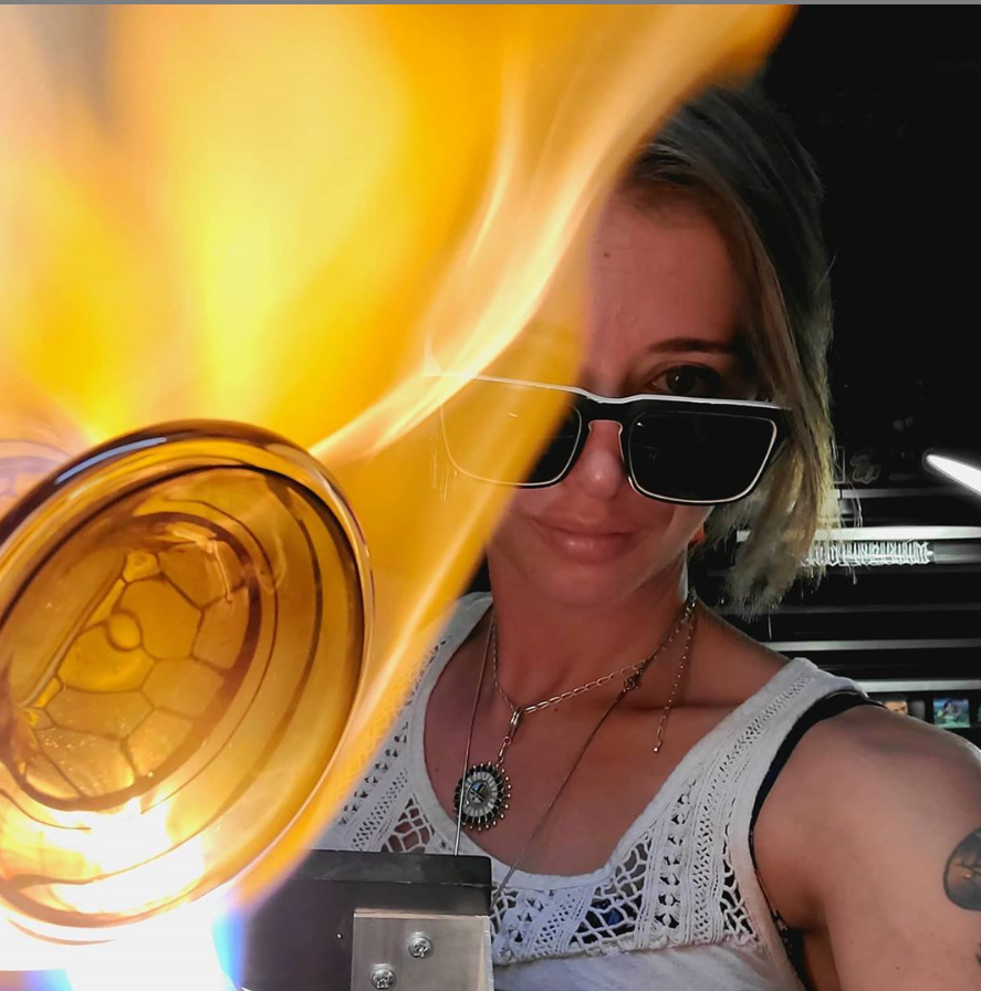 Liz Wright is a talented glass blower who is well known for her flowing sculptures and sea creatures. She makes a variety of work from solid to hollow and works with some pretty amazing people in her shop like AKM, Buck, Joe P and more!